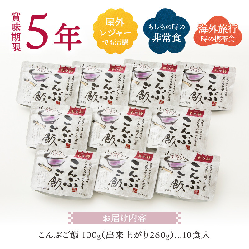 こだわりの国産塩昆布(個包装)を使用 a10-820 5年保存 こんぶご飯 10食入 100g 非常食 備蓄 災害