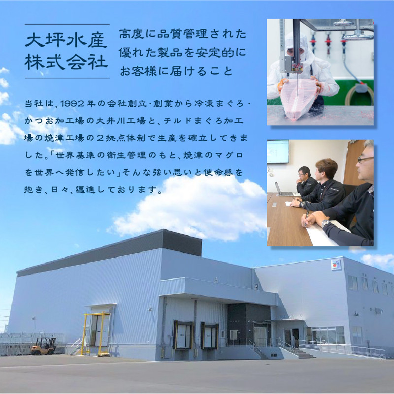 【説明】大坪水産のロングセラー品<ねぎとろ>をはじめ、ブラックダイヤモンドと称される<本まぐろの大トロ柵>と静岡県焼津で水揚げされたすっきりとした甘さの<南まぐろ中トロ柵>、地元の漁師からも愛される<南まぐろ赤身柵>、口当たりなめらかな<ばちまぐろの中トロ柵>を集めたセット。大坪水産は、FDA HACCP・EU HACCP認定を共に最高レベルで取得し、安全で安心な食材をお届けしています。また、サスティナブルシーフードへの取り組みとしてMSC CoC認証も取得しました。まぐろは低カロリーで栄養価が高く、免疫力もアップすると言われています。新鮮なまぐろの味を是非ご堪能下さい。 【産地】日本、台湾、太平洋、その他(原料原産地の国名は漁獲船籍) 【製造】焼津市内 【加工】焼津市内 【天然・養殖】天然:南鮪、鉢、黄肌、袖長/養殖:本鮪 【賞味期限】発送日を含め冷凍で8日 【原材料】ねぎとろ:黄肌鮪(日本、台湾、その他)、鉢鮪、袖長鮪、植物油脂/pH調整剤、酸化防止剤(V.C、V.E) 本まぐろ大トロ柵:養殖本鮪(マルタ・地中海) 南まぐろ中トロ柵:南鮪(日本・太平洋) 南まぐろ赤身柵:南鮪(日本・太平洋) ばちまぐろ中トロ柵:鉢鮪(台湾・太平洋) 【注意事項・その他】※時期により内容等が変更になる場合がございます。 ※ごく稀にネギトロの製造工程の中でマグロの皮(黒い点のようなもの)やスジ・血合いが含まれる場合がございますが、品質には問題はございませんのでご安心ください。