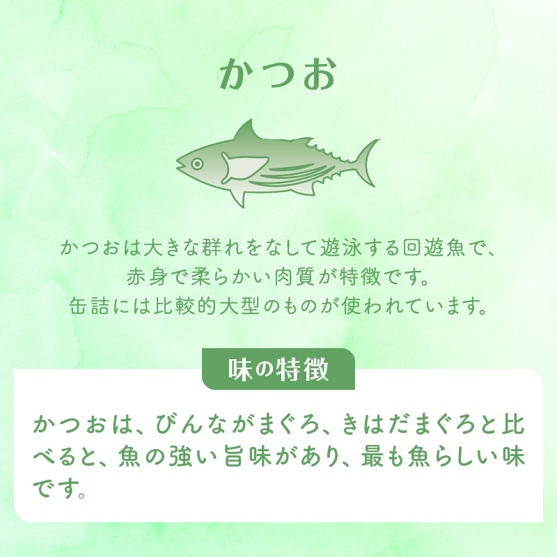 【説明】かつおを使用したオイル不使用のシーチキン。こだわりの調味料を使っているので油漬けのおいしさ・旨味と、水煮のヘルシーさが同時に楽しめます。