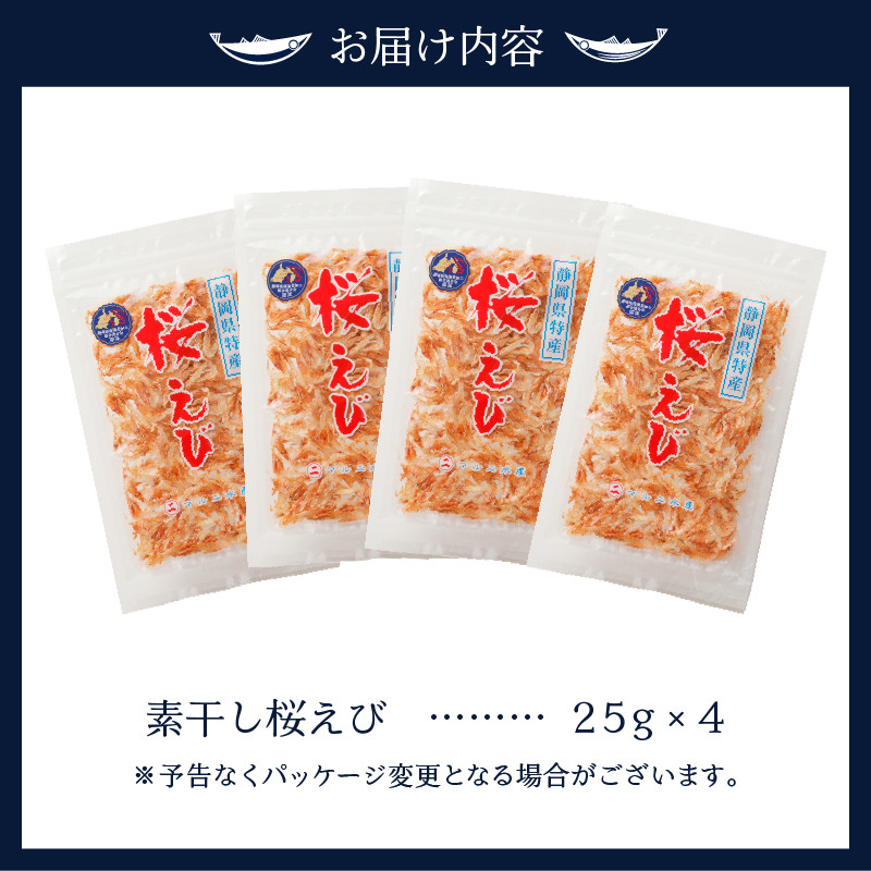 駿河湾でとれた貴重な郷土の産品! a12-134 素干し 桜えび 詰合せ 25g×4 えび 海老 エビ 桜エビ 冷凍 国産 焼津
