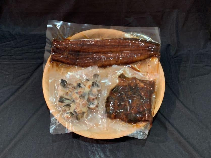 | 容量 | うなぎ 蒲焼き 長焼き:約120g、うなぎ 蒲焼き きざみ:約60g、うなぎ 白焼き きざみ:約60g、サンショウ付タレ:2 |