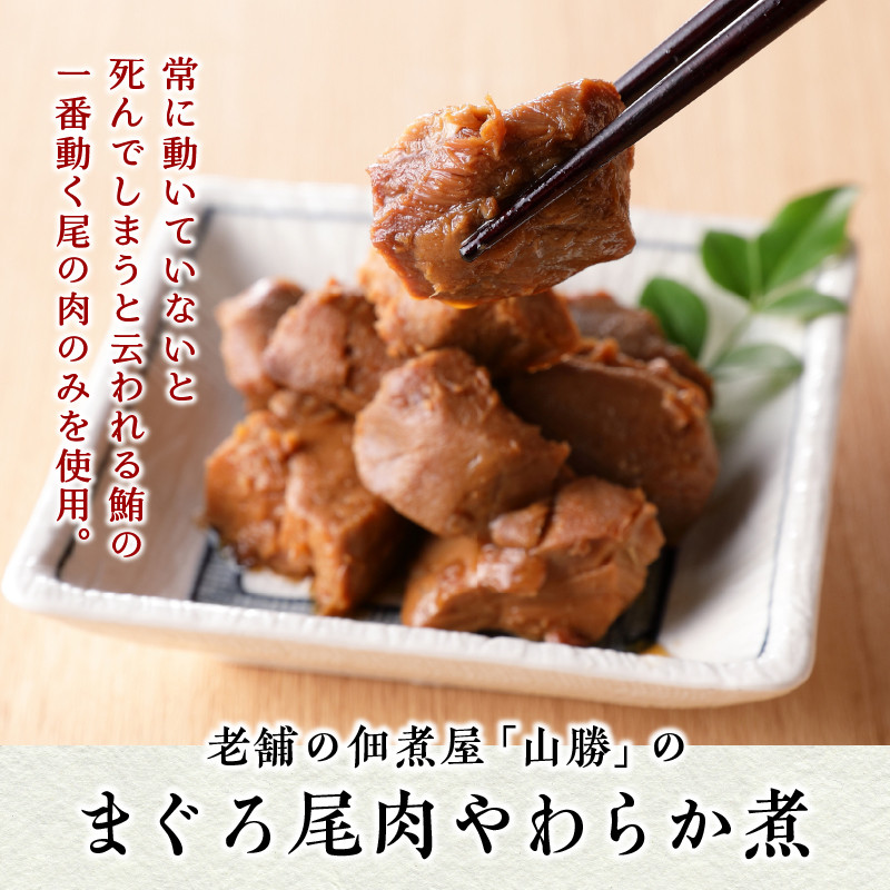 【説明】一尾の まぐろ からわずかしか取れない尾肉を一口大にカットし、砂糖・醤油で炊きあげました。 やわらかさ が特徴です!株式会社山勝さまご提供。