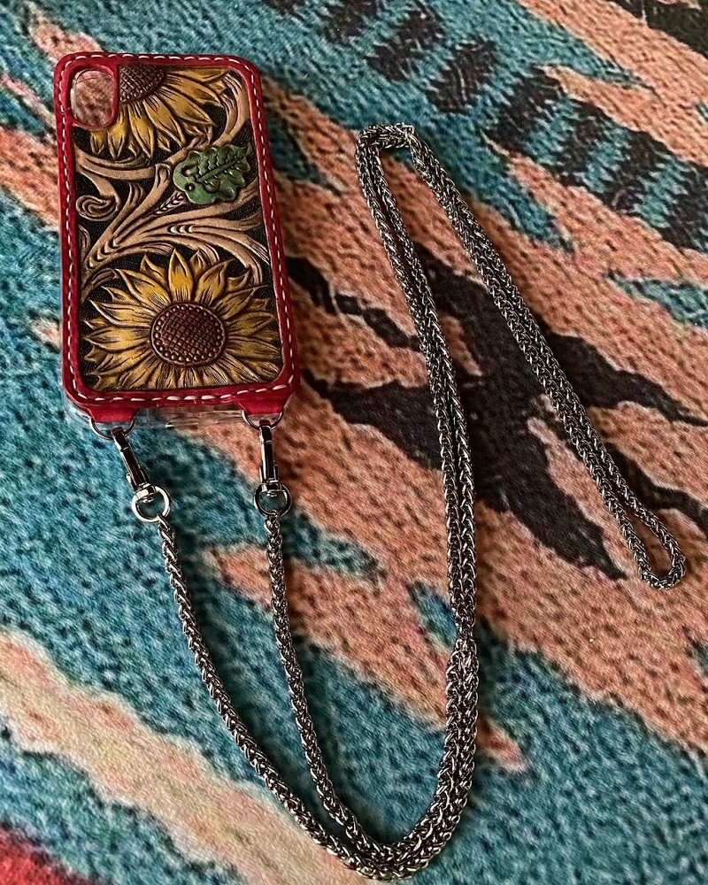 【説明】iPhoneの機種を中心とし、牛ヌメ革でカービングデザインしたスマホケースカバーを制作します。スマホを肩から単独でぶら下げられるよう、本体と同じ牛ヌメ革でベルトも制作しお届けします。写真で見るより、カバーとベルトで約82g(種類によります)と軽いので、肩の負担も少ないと思います。 【産地】国内(牛ヌメ革) 【製造】焼津市 【加工】焼津市 【使用期限】なし 【注意事項・その他】 ※カバー本体は他社製品に当社で制作した革デザインを縫い付けたお品です。対応機種については、下記事業者までお問い合わせの上、お申込みください。 ※備考欄にご希望のデザインを【シェルダンガービングデザイン・ひまわり・ひまわりと蝶・蝶】よりお選びいただきご記入ください。 ※ストラップのお色【ピンク・赤・黒・こげ茶】をご記入ください。 ※シェルダンガービングデザインにつきましては、基本的に【こげ茶・シングルタイプストラップ】になりますが、ご希望がございましたら対応可能です。いずれもご記入がない場合は、おまかせとなりますのでご了承ください。 【問い合わせ先■KRS Custom Saddle:090-1271-1956】 ※受注後、すべて手作業でお作りする為、お時間をいただく場合がございますのでご了承ください。