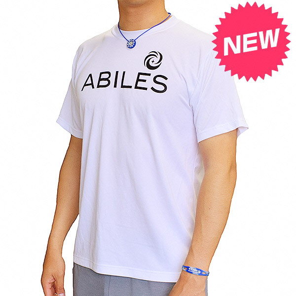 【説明】パワーを身に纏う ABILES POWER Tシャツに新しい品が登場。ABILES独自開発技術を駆使したオリジナルTシャツです。シンプルなデザインにこだわり普段着からスポーツをする時まで、様々なシーンに合わせてお使いください。従来の商品に比べ、シルクの様な肌触りになっております。有害な紫外線をカットし、吸水速乾性機能を持ち合わせています。弊社Tシャツのシルクプリント(胸部、背部の文字とロゴ)の原材料には鉱物を含有しております。石英や純金を含んだプリントに特殊加工を施すことで身体能力向上、バランス能力や柔軟性アップの効果が期待できます。(アクセサリーのシリコンや、ゴルフグリップと同様の加工をしております。)