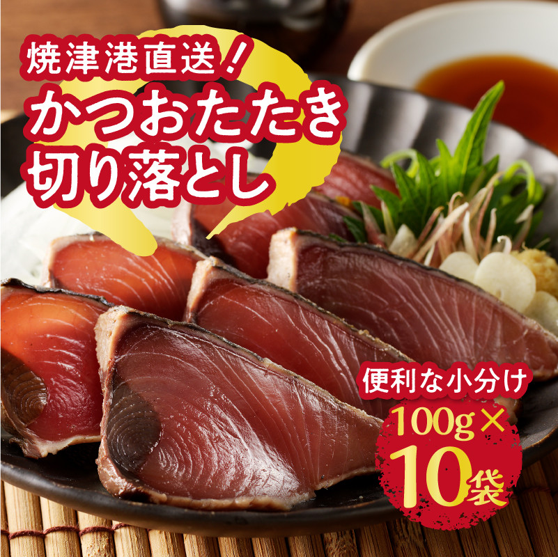 焼津港水揚げからお届けするかつおのタタキ a10-909 焼津港直送!簡単便利!かつおたたき切り落とし100g×10袋