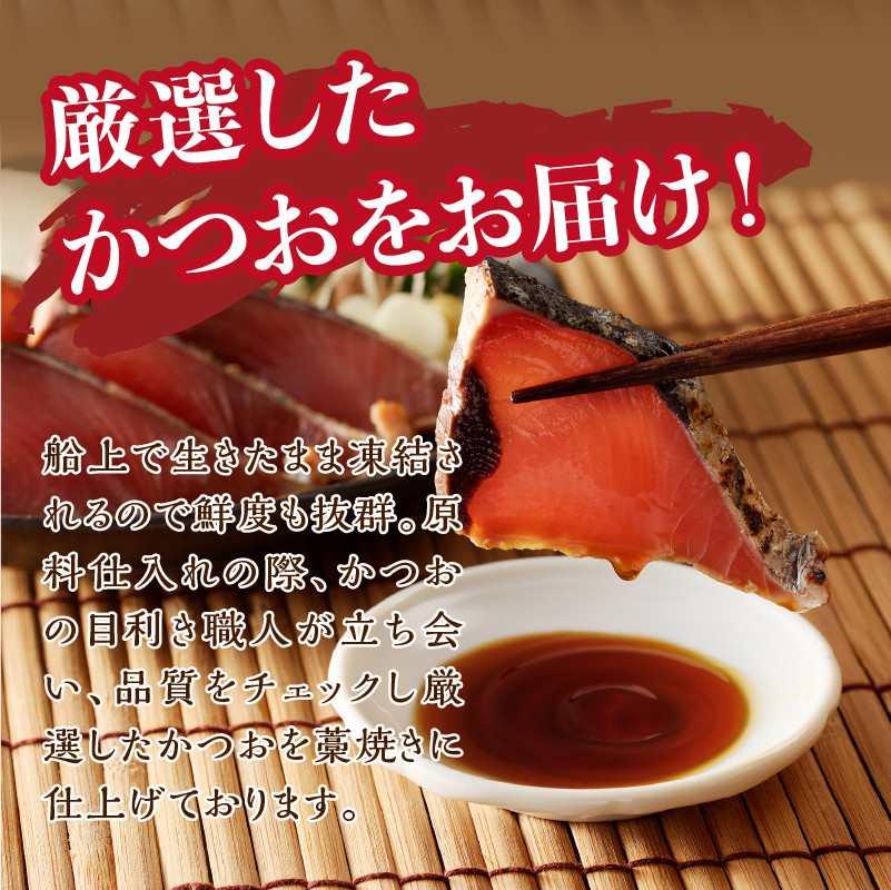 【説明】かつおの水揚日本一!の焼津から本場のかつおのタタキをお届け致します。船上で生きたまま凍結されるので鮮度も抜群。また原料仕入れの際、かつおの目利き職人が立ち会い、品質をチェックし厳選したかつおを藁焼きに仕上げております。ご家庭で食べ易いように1口サイズの切り落としに仕上げておりますので、袋のまま流水で5分ほど解凍すれば簡単に焼津本場のかつおのタタキがお召し上がりいただけます。個包装で作ってありますので食べたい時に食べられます。残りは冷凍庫で保存できるので、ご家庭で重宝していただけると思います。本場焼津のかつおを是非、ご賞味くださいませ。