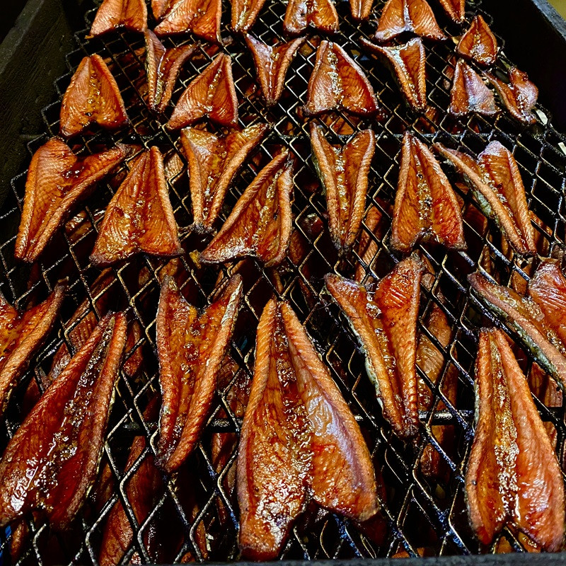 骨ごと愛して:丸ごと食べれるほどにやわらかい鮭の骨の燻製。噛めば噛むほど増す旨さ。一度食べたら忘れられない癖になる味です。
