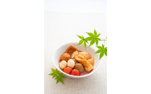 容量 | 汁なしおでん:黒はんぺん、ちくわ、さつま揚げ、こんにゃく、うずらの卵(5品):100g×6袋 |