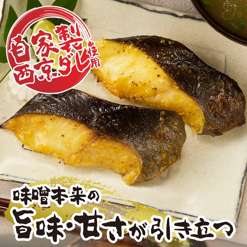 【説明】はえ縄船が漁獲した、鮮度・脂乗りの良い銀鱈を使用。味噌本来の大豆の旨味。西京味噌の甘味引き立つ自社配合の西京味噌に漬け込んだ人気品です。創業100年になります。