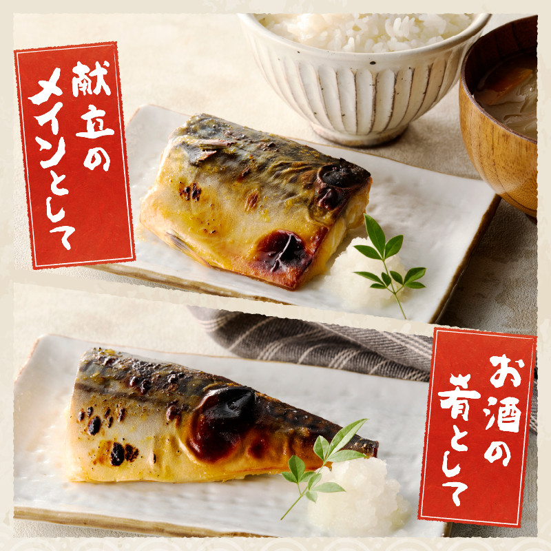 【説明】鮮度・脂乗りの良い大型のノルウェーさばを使用し、味噌本来の旨味・甘さ引き立つ自社配合の西京味噌に漬け込んだ製品です。創業100年になります。