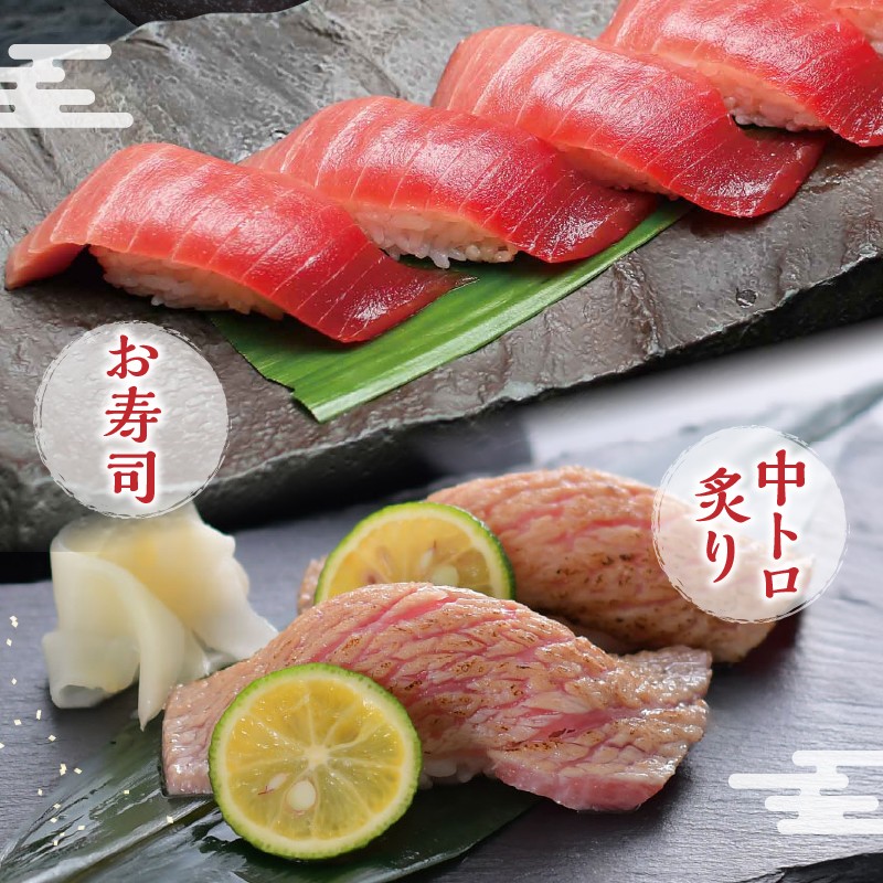 天然本まぐろと天然南まぐろの中トロと赤身の食べ比べセットです。
