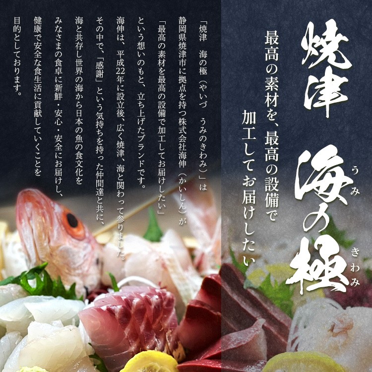 焼津市は静岡県の中部に位置する自治体で、温暖な気候なまちです。焼津市には遠洋漁業の基地として主にカツオ・マグロが水揚げされる焼津港と、近海・沿岸のアジ・サバなどが水揚げされる小川港、シラスや駿河湾でしか漁獲できないサクラエビが水揚げされる大井川港があります。そのため、焼津では水産加工業も全国屈指の生産地となっており、カツオ節など様々な種類の水産物を特産品としています。また、温暖な気候と大井川を水源とする豊かな水など自然条件に恵まれ、米やいちご、茶、みかんなどの農業も豊富です。