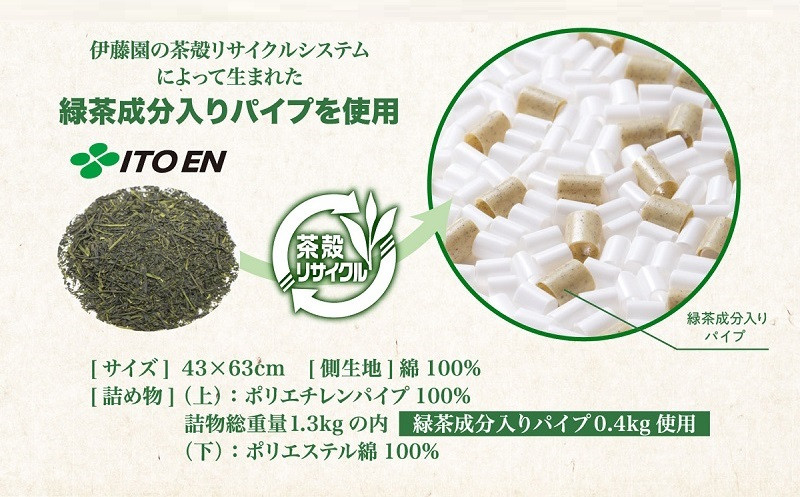 茶殻をリサイクルした緑茶成分入りのパイプ素材を使用したピロー