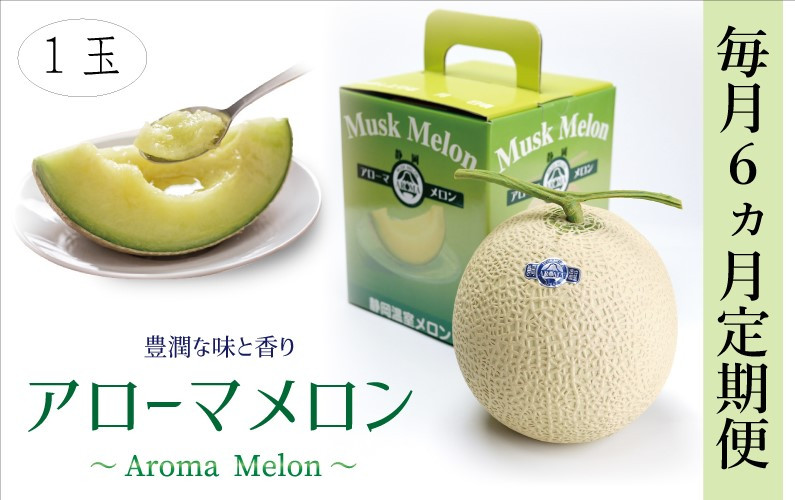 毎月発送の定期便です。 アローマメロンは、伝統の栽培技術と温暖な気候のガラス温室栽培により、1年を通して美味しいメロンとして、また静岡県を代表する高級ブランドメロンとして高く評価されております。 滴る果汁ととろけるような果肉、豊潤な香りの甘~いメロンで至福のひとときを! ■生産者の声 アローマは静岡が誇る高級マスクメロンのブランドです。等級及び出荷の為の基準も厳しく統一されており、品質には自信を持ってお客様に提供できます。美味しいと笑顔で食べていただけるようなメロン作りを心がけています。 周年栽培である為365日水やり、肥料、温度など繊細な管理を怠れない大変な仕事ですが、とことん手間をかけ外観・内容共に良いメロンをお届けできるよう頑張ります。是非、皆様のお手元に… ■注意事項/その他 ※『食べ頃日の目安』を箱またはカードに記入してあります。 ※生鮮物ですので期限は目安となります。到着後は直ちに箱を開け状態をよくご確認の上、記載の食べ頃日の目安を参考にお早めにお召し上がりください。 ※収穫状況により、発送予定から前後する場合がございます。 ※画像はイメージです。 ※アローマメロンは流通構造上、混在する場合がございます。よって市内とその周辺市町村いずれか(磐田市・菊川市・牧之原市・御前崎市)の組合認定生産者のものとなる旨ご了承くださいませ。 ※長期不在等【寄付者様都合により返礼品をお受取りできなかった場合】の再送・返金はお受け致しかねます事あらかじめご了承ください。 ◆◆返礼品到着後、すぐに状態をご確認ください◆◆ ・返礼品の状態には万全を期していますが、万が一〈破損〉〈不備〉〈不具合〉等があった場合は、サポートセンターへご連絡ください。 ・返礼品の状態について、外装と返礼品全体、不備が分かる部分の【写真】を複数枚ご準備いただくと申請がスムーズになります。