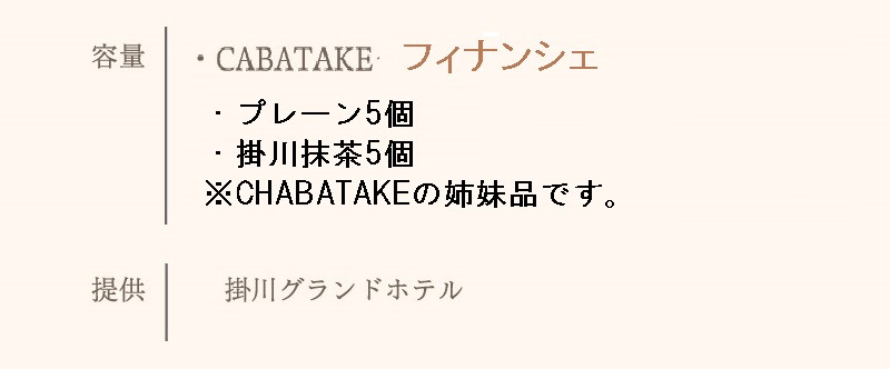 『CHABATAKE』フィナンシェ2種(プレーン5個&掛川抹茶5個)掛川グランドホテル【1602322】