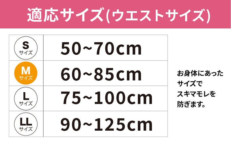ご本人が着脱される場合は、ひとまわり大きめサイズの方が上げ下げしやすい場合もありますが、大きすぎるとモレにつながる可能性がありますので、ぴったりサイズの選択をおすすめします。