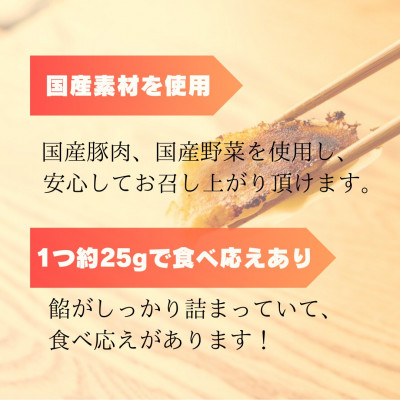 国産野菜と挽きたての厳選国産豚肉を使用し、たくさんの旨味をモチモチの皮で新鮮なうちに閉じ込めています。