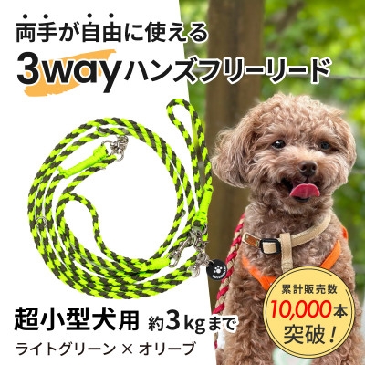 <犬用リード>3WAYハンズフリーリード(超小型犬用)ライトグリーン×オリーブ<ゴールデンママ>【1663366】