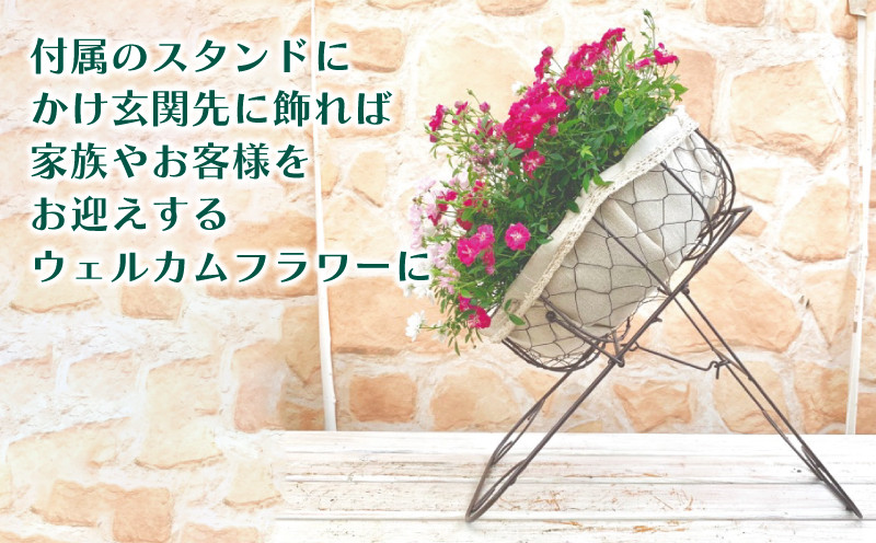 可愛らしいリング型のバスケットに植えられたミニ薔薇で とても満足しています。花持ちも良く 次から次へと沢山の花をつけ楽しませてくれています。