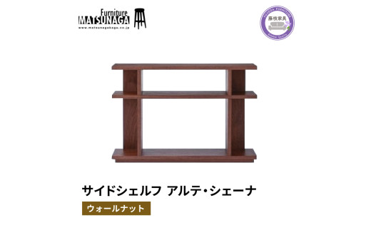 スタイリッシュ且つスタンダードなデザインで仕上げられたサイドシェルフ(飾り棚) 本棚 ウォールナット 無垢材 天然木 松永家具 藤枝家具 キッチン日用品 木材 木工 おしゃれ 家具 雑貨 インテリア 棚 たな シェルフ アルテ シェーナ 静岡県 藤枝市
