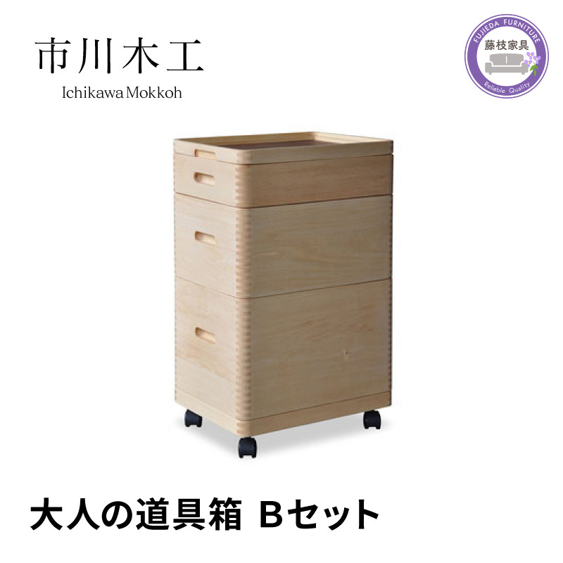 家具としても収納としても使える、組み合わせ自在の道具箱 収納 ボックス 木製 3段 キャスター 付き 小物入れ ケース ラック 道具箱 蓋付き 組み合わせ おしゃれ 整理 インテリア 家具 サイドテーブル 備蓄品 市川木工 ひのきの バースウッド ウォールナット Bセット 日用品 静岡県 藤枝市