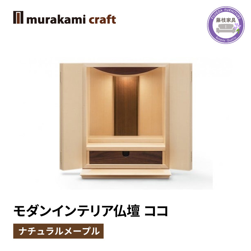 従来のお仏壇を置くスペースが充分に無いお部屋やアパートにも置けるコンパクトサイズ 仏壇 モダン ナチュラル メープル ココ 仏具 お供え 供養 台置き 木製 インテリア 家具 コンパクト ウォールナット 日本製 村上クラフト 藤枝家具 静岡県 藤枝 静岡県 藤枝市