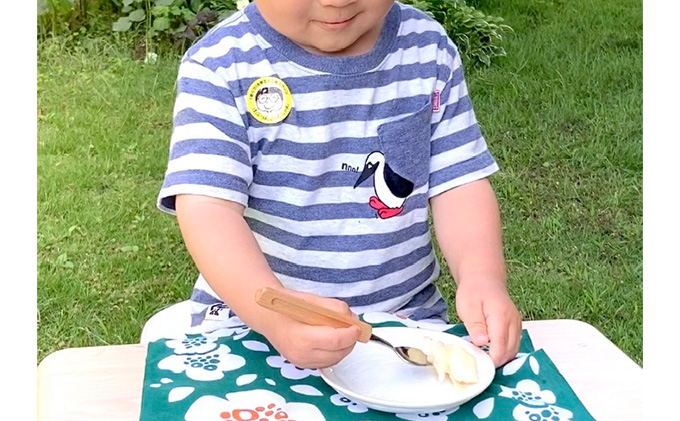 藤枝市の木工職人さんが一本一本スプーン先につけてくれた木製の持ち手には、ウレタン塗料(食品安全衛生法20号適応)を塗ってあります。家庭用食洗器で1年間使用可能ですが、できれば手洗いをおすすめします。また、月に一回程度はオリーブオイルなどを塗ってお手入れしていただけると長持ちします。デザートのたび5年以上お使いいただいているお嬢さんも。