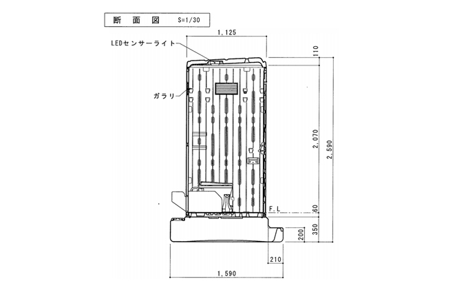 | 容量 | 仮設トイレ本体1台 ポリエチレン製 本体サイズ:850×1590×2590mm 便槽容積:約350L 清水タンク容積:約60L 重量:103kg LEDセンサーライト:AC100V/DC12V/乾電池 |