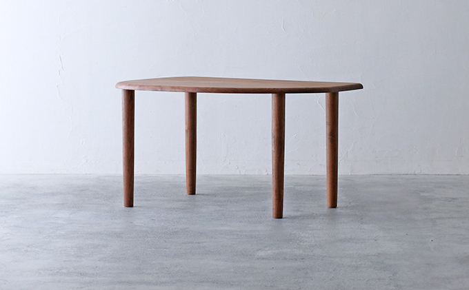 クジラのような形の遊び心あるデザイン。30mm厚の天板に丸テーパー脚でスッキリ ダイニング テーブル 木材 無垢 ウォールナット 高級 幅 130 奥行 87 高さ 71 秋山木工 おしゃれ 変形 家具 木組み 静岡県 藤枝市