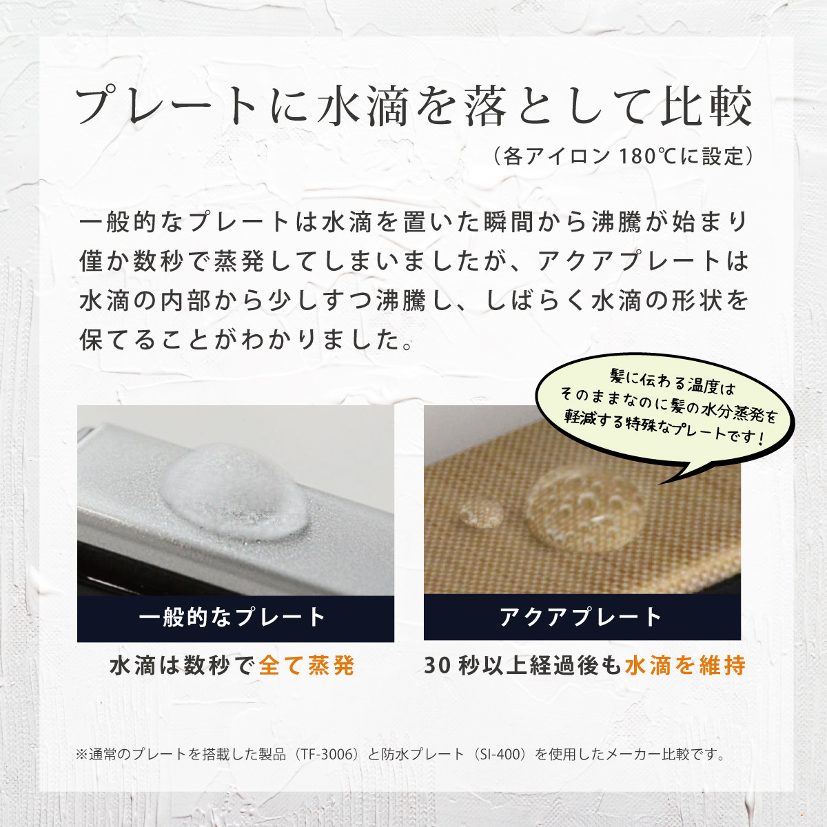 ■アクアプレート…髪の水分維持と摩擦を軽減するのでスタイリングのダメージを最小限に抑えます。