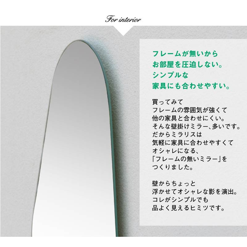 シンプルで美しい優しいカタチ。賃貸に掛けられる壁掛けミラー。 壁掛け ミラー かがみのカタチ シウ 鏡 洗面鏡トイレ 洗面所 賃貸 玄関 貼れる 一人暮らし ノンフレーム 北欧 メイク 化粧 DIY シンプル 韓国 インテリア 変形 デザインミラー