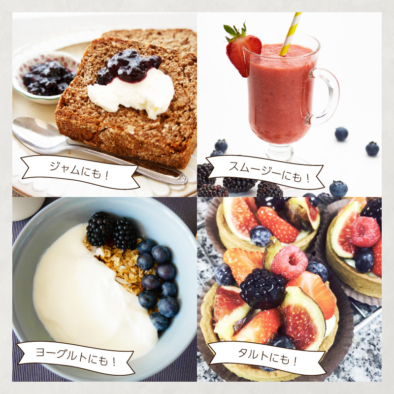 ジャムやスムージー、そのままヨーグルトにのせても美味しいです。