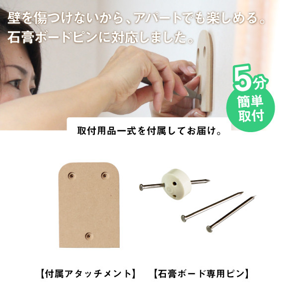 そんなお客様に一般的なアパートの壁で使われる素材・石膏ボードに対応したピン専用の壁掛け方式・アタッチメントを新たに開発しました。 目立たない小さな穴のピンを複数使い固定することで、安心して大きな鏡を壁に掛けられます。 これでお好きなところに、好きなだけ、鏡・ミラーのある輝く暮らしをお楽しみいただけます。 光の反射でお部屋が明るくなるのはもちろん、美しい鏡はメイクや身だしなみチェックなど毎日の時間をクリアに映し、明るい気持ちにさせてくれます。 全身がすっきり見える、薄くスリムなサイズはどこにでも掛けられます。
