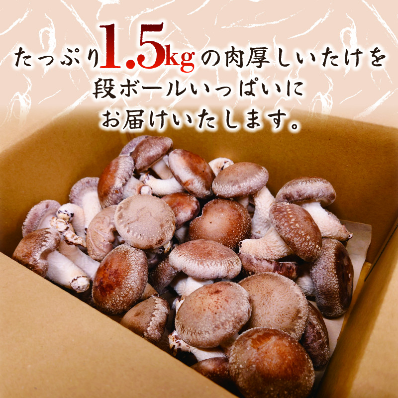 地域の生産者応援の品 肉厚ジューシーな香り立つ生しいたけです! ぜひ一度ご賞味ください。 【12月~4月発送】 訳あり 不揃い 生しいたけ 1.5kg 生 しいたけ 常温 配送 シイタケ 椎茸 大ぶり 食べ応え 厚い 肉厚 うまみ 栽培期間中 農薬不使用