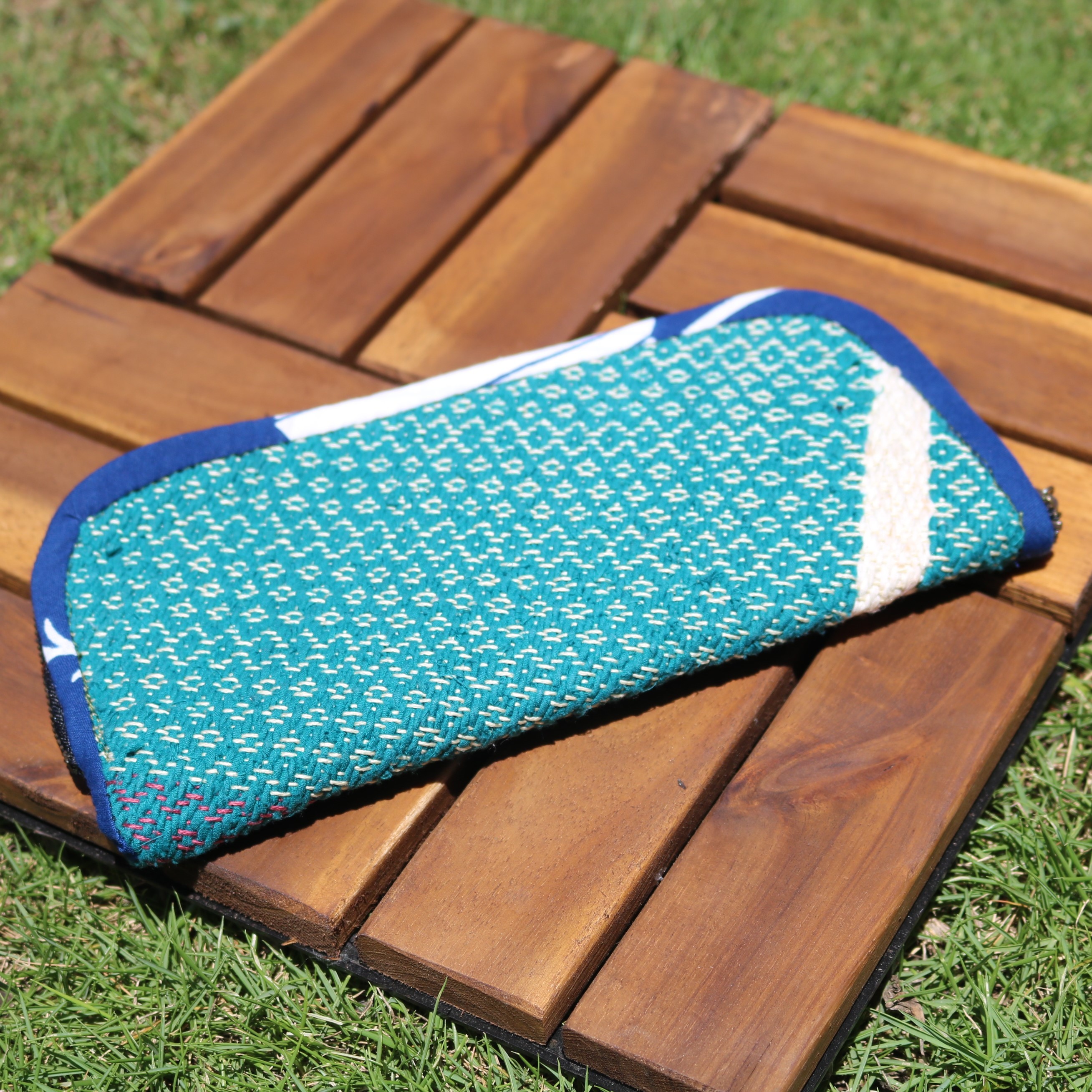 縦糸は白と赤、横糸は緑