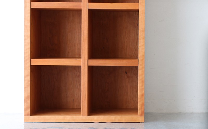 扉のないオープンタイプなので、本だけでなくレコード・雑貨などの飾り棚としても。 オープンラック 木製 ブラックチェリー材 幅76 奥行38 高さ148 収納 木製 棚 無垢材 ラック 見せる収納 棚 秋山木工 秋山木工株式会社 家具 インテリア シンプル おしゃれ 国産 静岡県 藤枝市