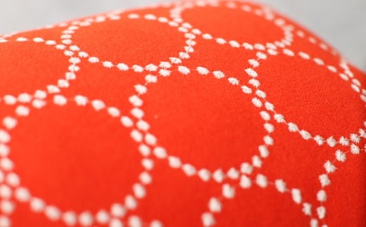 小さなドットが連なった輪は刺繍されており、糸の重なりで立体感があります。