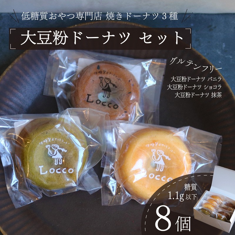 大豆粉ドーナツ3種セット。 大豆粉 ドーナツ 8個 セット グルテンフリー ショコラ バニラ 抹茶 焼きドーナツ ドーナッツ 甘さ控えめ バター 卵 小麦不使用 ココア 糖質制限 天然甘味料 スイーツ おやつ 贈答 ギフト プレゼント お茶うけ 冷凍ドーナツ 静岡県 藤枝市