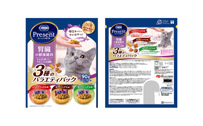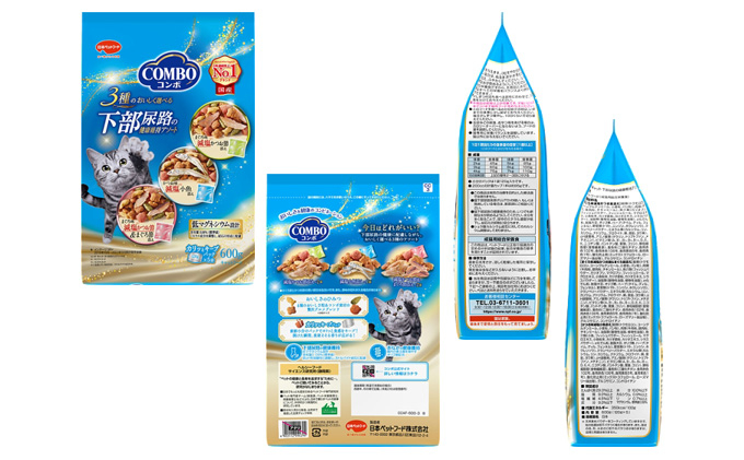 | 容量 | 日本ペットフード株式会社 静岡工場(静岡県袋井市製造) 6種(8袋内容量計2,580g) (1)コンボキャット 腎臓の健康維持 600g(袋入り 120gx5)2袋 (2)コンボキャット 下部尿路の健康維持アソート600g(袋入り 120gx5)1袋 (3)コンボピュアキャット まぐろ味・角切りまぐろ・かつお節添え 200g(袋入り 100gx2)2袋 (4)コンボピュアキャット まぐろ味・鶏肉・かつお節添え 200g(袋入り 100gx2)1袋 (5)コンボプレゼント キャット おやつ 下部尿路の健康維持 3種のバラエティパック 90g(3gx30袋入り)1袋 (6)コンボプレゼント キャット おやつ 腎臓の健康維持 3種のバラエティパック 90g(3gx30袋入り)1袋 賞味期間:常温365日 |