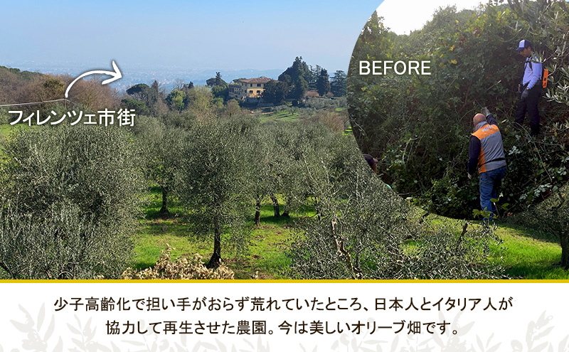 オリーブの名産地、イタリアのトスカーナにある自社農園産オリーブ100%