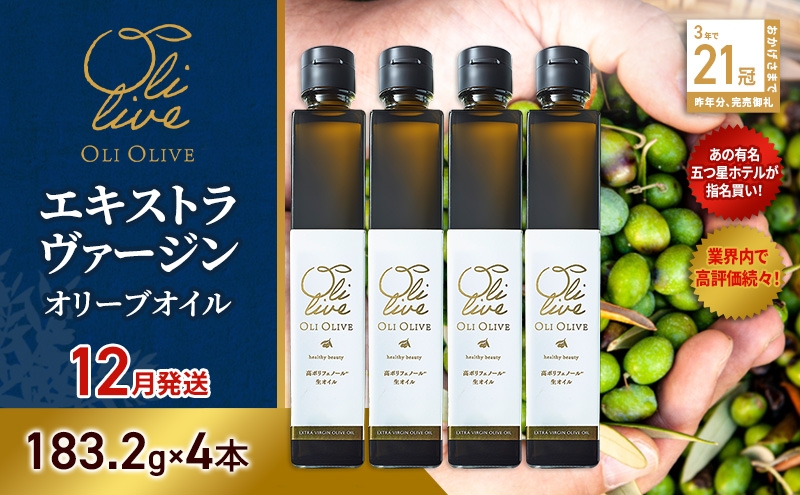 【五つ星ホテル指名買い】 トスカーナ産 エキストラ バージン オリーブオイル (183.2g×4本)【2026年12月発送】 調味料 油 オリーブ油 食用油 静岡県 袋井市