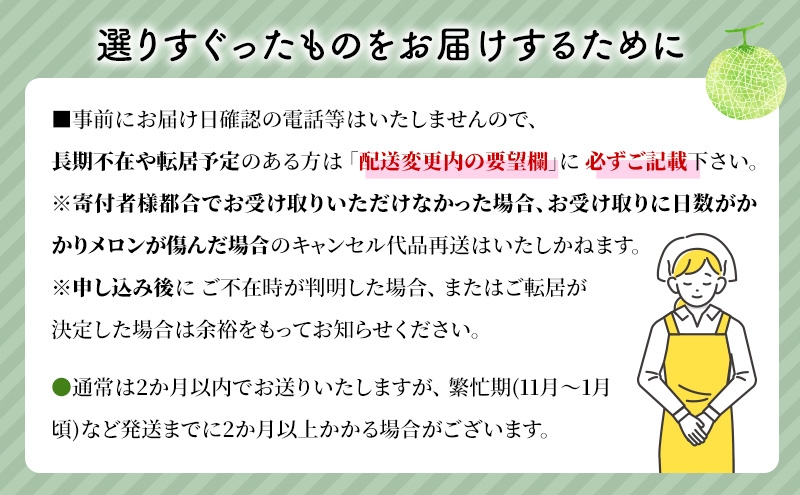 | 容量 | クラウンメロン(白等級)特大玉 1玉入(約1.5kg~)を4回お届け |
