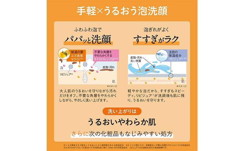 ・注目の保湿成分「リピジュア(登録商標)(*1)」が洗顔後も肌に残り、うるおいをキープ