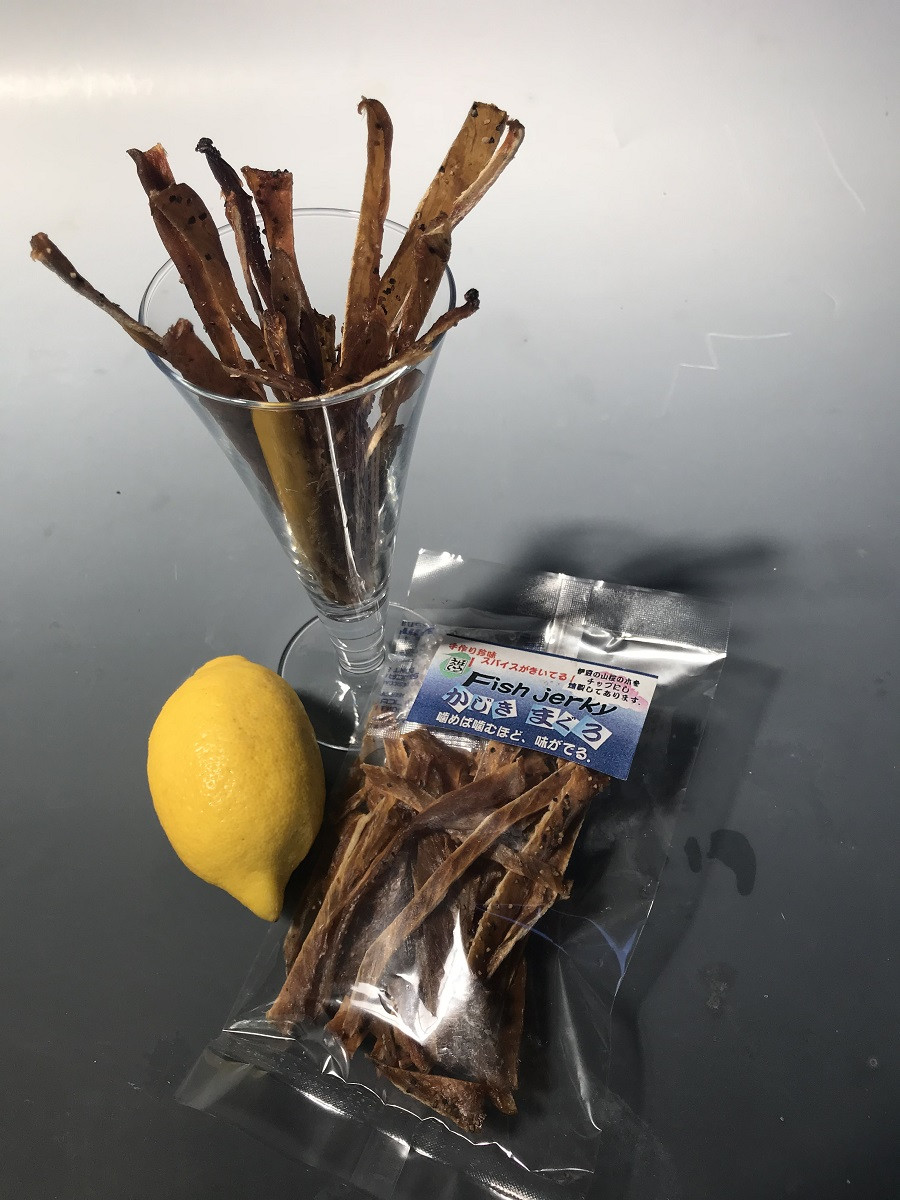 ビーフジャーキーの代用品ともいえるフィッシュジャーキーは噛めば噛むほどあじが出てくる逸品です。