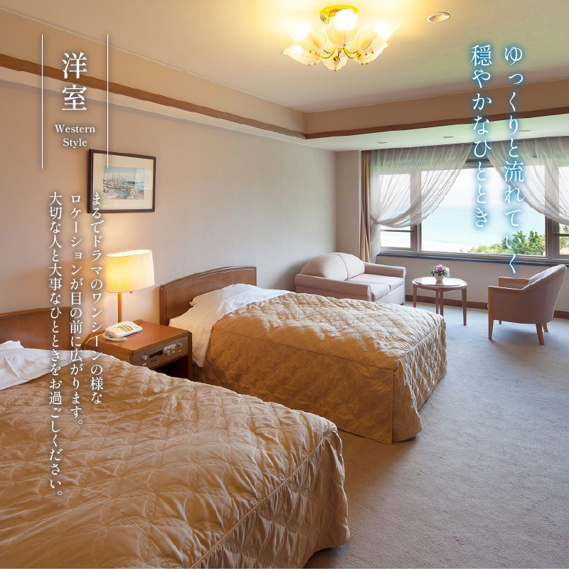 オーシャンビューの和室、または洋室にておくつろぎいただけます。