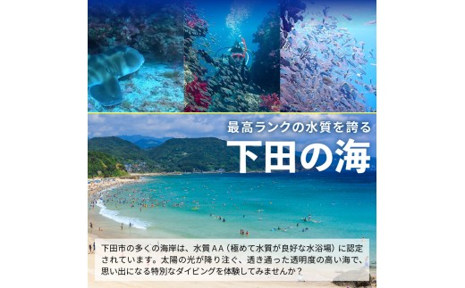 伊豆下田の白い砂地、太陽の光が綺麗に差し込む穏やかな海。ゆっくり練習して水中の冒険に出かけましょう。アドベンチャーの世界が待っています。 <生産者様の声> 白い砂地があるのも伊豆半島でもここ、南伊豆周りだけ。水質調査でもAA ランクに指定されている程透き通っています。是非、この綺麗な海の中を覗きに来てください。今までにない楽しい思い出が出来ます。 <注意事項/その他> ※お申し込み後、「マリンスタジオ ドラゴンレディ」よりご案内をお届けいたします。 ※案内文に従って、事前にご予約をお願いいたします。 ※満10歳の方からお申込みが可能です。 ※お申込みの際は、フルネーム・身長・体重・足のサイズ・当日の交通手段・携帯電話番号をご連絡いただきます。 ※3日前までにご予約ください。 ※繁忙期シーズンは 満席になる場合があり、お受けできない事があります。お早めのご予約をお願い致します。日程変更は致しかねますのでお申し込みの際ご注意ください。 ※天候等による中止のご連絡は前日までにご連絡いたします。その場合、日程変更等対応させていただきます。 ※お1人様1日2回のダイビングとなります。 ※画像はイメージです。 本券は破損、紛失、盗難、有効期限切れなどにおける再発行はお受けしかねます。 ※本券は金券ではありません。換金や転売は禁止いたします。 ※ご利用の際には本券をご持参ください。ご持参いただけない場合、現地にて規定の料金をご請求させていただきます。 ※返礼品については到着後すぐに内容物をご確認いただきますようお願いいたします。 ※ご寄附後のキャンセル、返礼品の変更・返品・寄附者様のご都合により返礼品を受け取らなかった場合の再発行・再送付はいたしかねます。あらかじめご了承ください。 【関連キーワード】 体験 ダイビング 海 初心者 2回コース