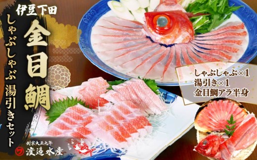 静岡県下田市で水揚げされる「地金目鯛」を、贅沢にも【生】で召し上がることができるセットです。 伊豆下田港では水揚げされる金目鯛を漁獲域によって3種類に分類しています。その中でも、日戻り操業の漁師が近海で釣り上げる、最も脂の乗りが良いとされる金目鯛を「地金目鯛」と呼んでいます。その身を口にすれば旨味が広がり、上品な甘さが感じられることでしょう。 このお礼品は申込を受けてから地金目鯛を仕入れ→職人の手で魚をさばいて調理加工→〔生〕の状態で即出荷いたしますので、抜群の鮮度で寄付者様のもとにお届けします。地金目鯛丸々1尾分を使用し、半身を定番の「しゃぶしゃぶ」に、もう半身を抜群の鮮度でこそ味わえる「湯引き(お刺身用)」にしたセットです。 【事業者からのコメント】 豊富な水揚げ量を誇る下田の金目鯛をはじめとした、厳選された伊豆の食材を使ったお礼品をお届けします。創業以来渡辺水産が培ってきた鮮魚の加工技術や調理ノウハウを元に、伊豆に訪れなければ食することができなかったあの味を、ご家庭にいながら楽しめる製品を生み出しています。 【発送について】 現状、漁獲量が減少しており、商品のご用意にお時間を要しております。 ご入金確認後、2026年以降水揚げされ次第発送いたします。 ■注意事項/その他 ※水揚げ状況によりましては、使用する金目鯛のサイズを下げて一本半で商品をご提供する場合がございます。 ※天然魚の取り扱いにつき悪天候等による不漁の際は、お届けが遅れる場合がございますので了承ください。(特に台風シーズンおよび冬季につきましては不漁が多い時期となる為、お届けが大幅に遅れますのでご了承ください。) ※ご注文が殺到する年末年始等につきましては、お届けが遅れますのでご了承ください。 ※ナマモノの加工品ですので賞味期限にかかわらず、なるべく到着日にお召し上がりください。 ※盛り付け画像はイメージです。 ※返礼品については到着後すぐに内容物をご確認いただきますようお願いいたします。 ※ご寄附後のキャンセル、返礼品の変更・返品はいたしかねます。あらかじめご了承ください。 ※寄附者様のご都合(不在・受け取り拒否等)により商品を受け取らなかった場合、または受け取りまでに期間がかかった場合、返礼品の再送付はいたしかねます。あらかじめご了承ください。