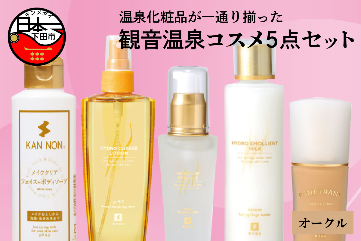 観音温泉 コスメ5点セット(ファンデーション色、オークル) [化粧水 美容液 乳液 ボディソープ フェイス ファンデーション オークル コスメ 5点 セット 観音温泉 お取り寄せ 伊豆 下田]