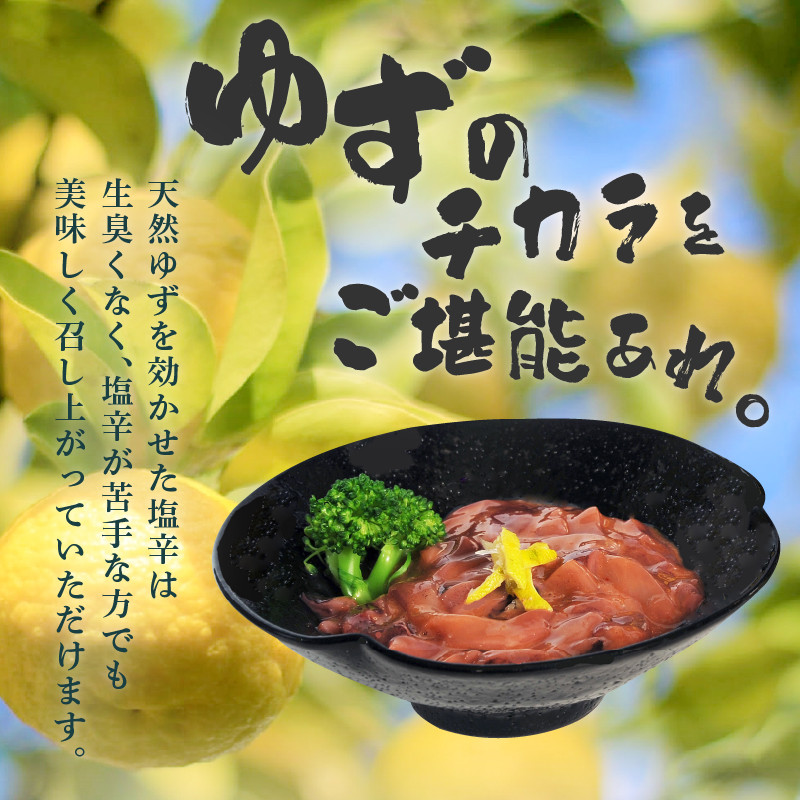 天然ゆずの香りと、薄塩で上品に仕上げた塩辛です。