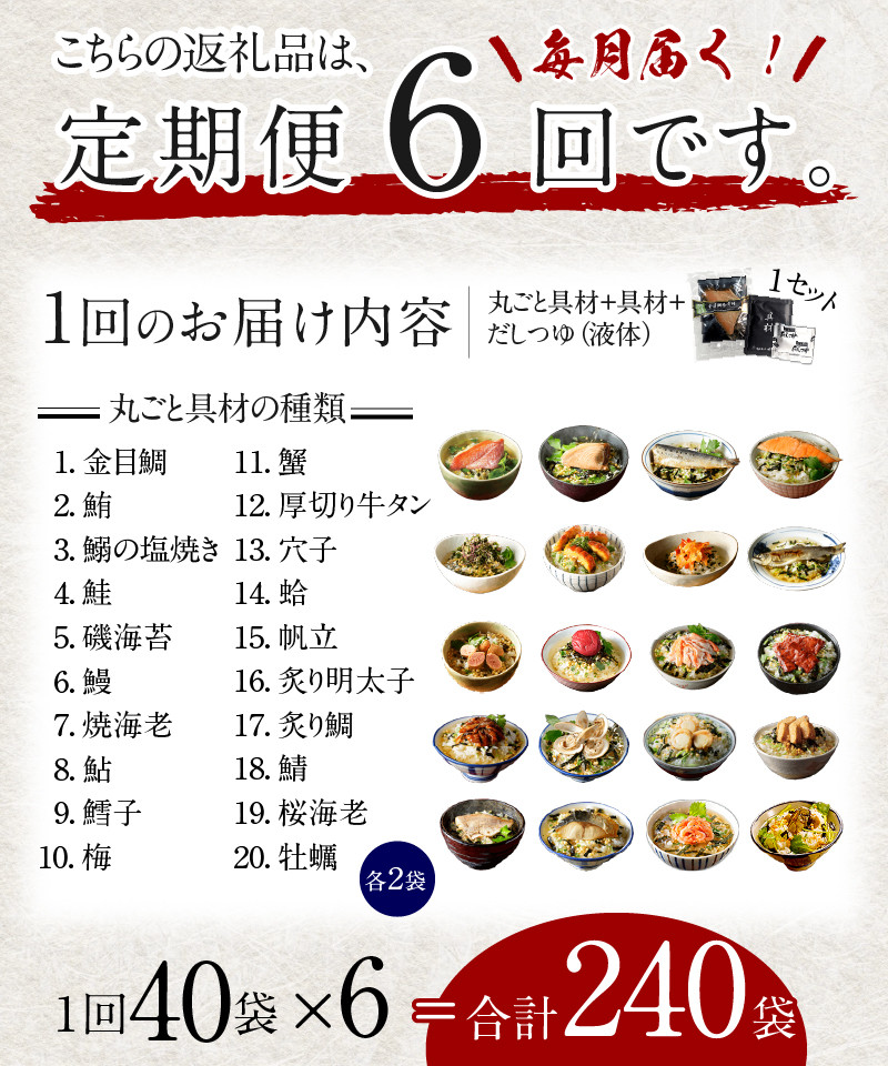 全6回、毎月新鮮な海鮮お茶漬け40食セットをお届け致します